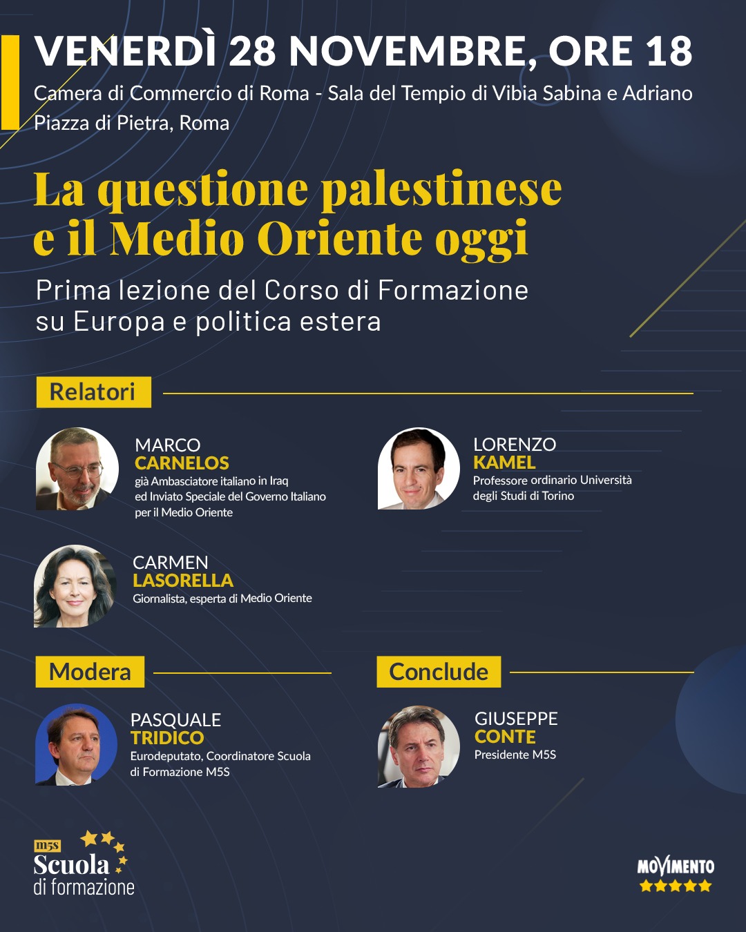Tema della prima lezione sarà la questione palestinese e il Medio Oriente oggi.